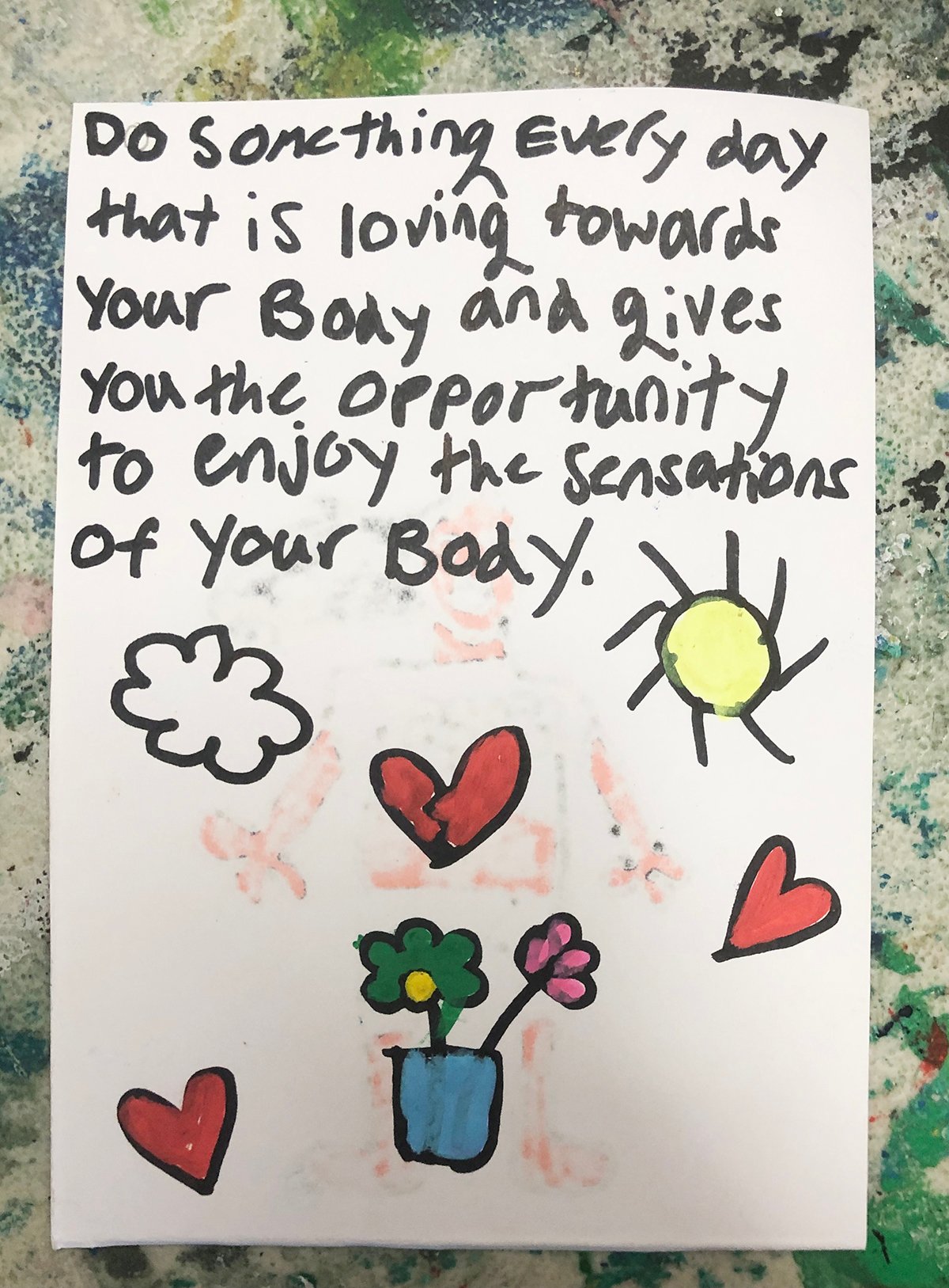 The girls create a personal artwork poster of their self talk and a list of Supportive Statements they can use to empower their mindset to have a healthier relationship with their body.