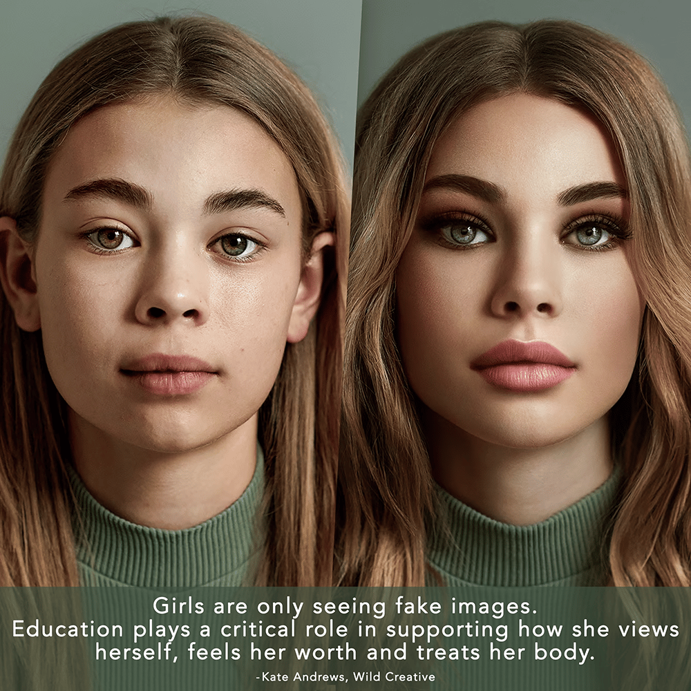 We dissect advertising messages and examine real vs fake images with a critical lens so girls becomes savvy to the tactics used by companies that make girls and women feel bad about the way they look.