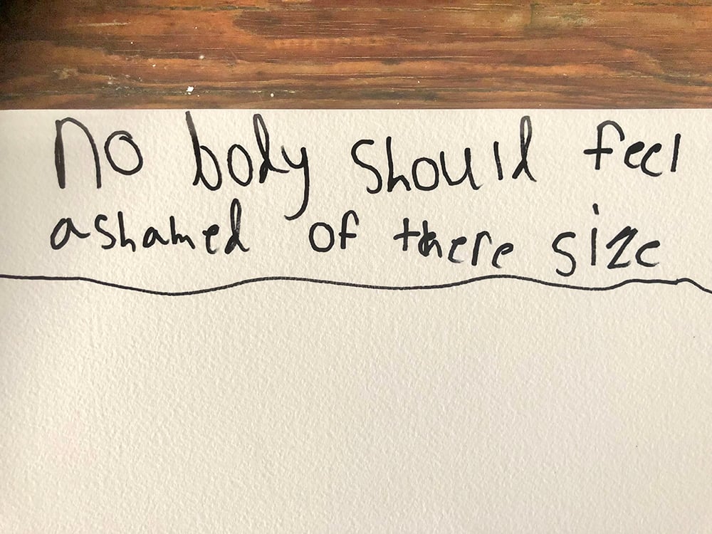 The girls create collaborative poster outlining ads messages vs how they really feel about their bodies before these messages make an impact.